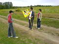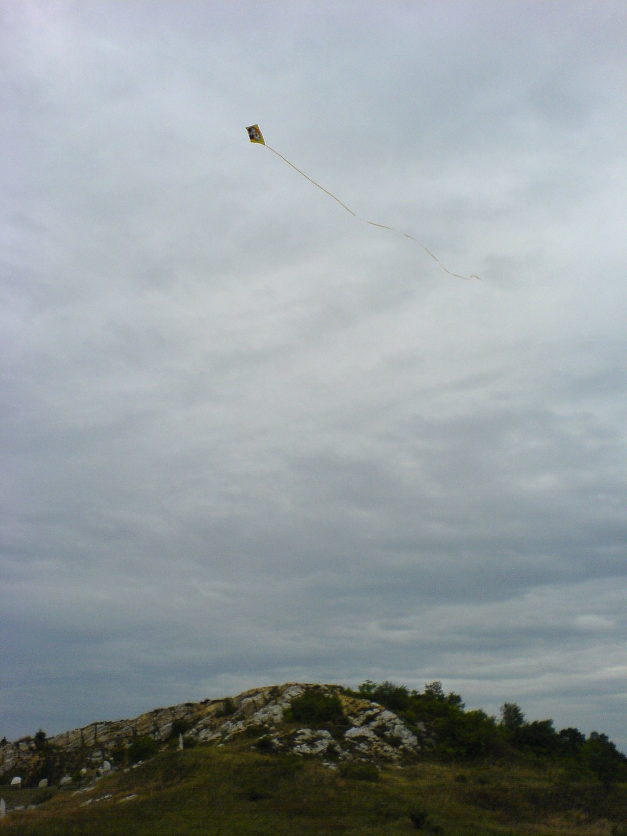 A maradék időben sárkányt is eregettünk. Kezdetben egy kisebb, Mickey egeres sárga színű műanyag fóliából készült sárkányt műanyag rudakkal, később sajátot is készítettünk. Székesfehérváron szereztünk hozzá aluminium rudakat, valamint asztalterítőt. Az eredmény szép volt, ám nem hosszú életű. Első reptetését sem érte meg. A szélben először a vízszintes rúd, majd a függőleges tört ketté, mindössze pár másodperc alatt. A probléma valószínűleg a rudak egybeillesztésekor történő bevágás lehetett. Készült újabb is, de az onnantól beálló szélcsend követkeytében nem tudtuk kipróbálni.
