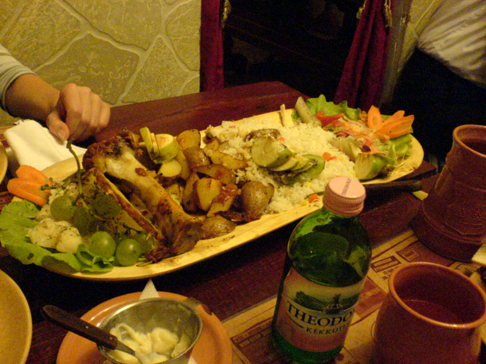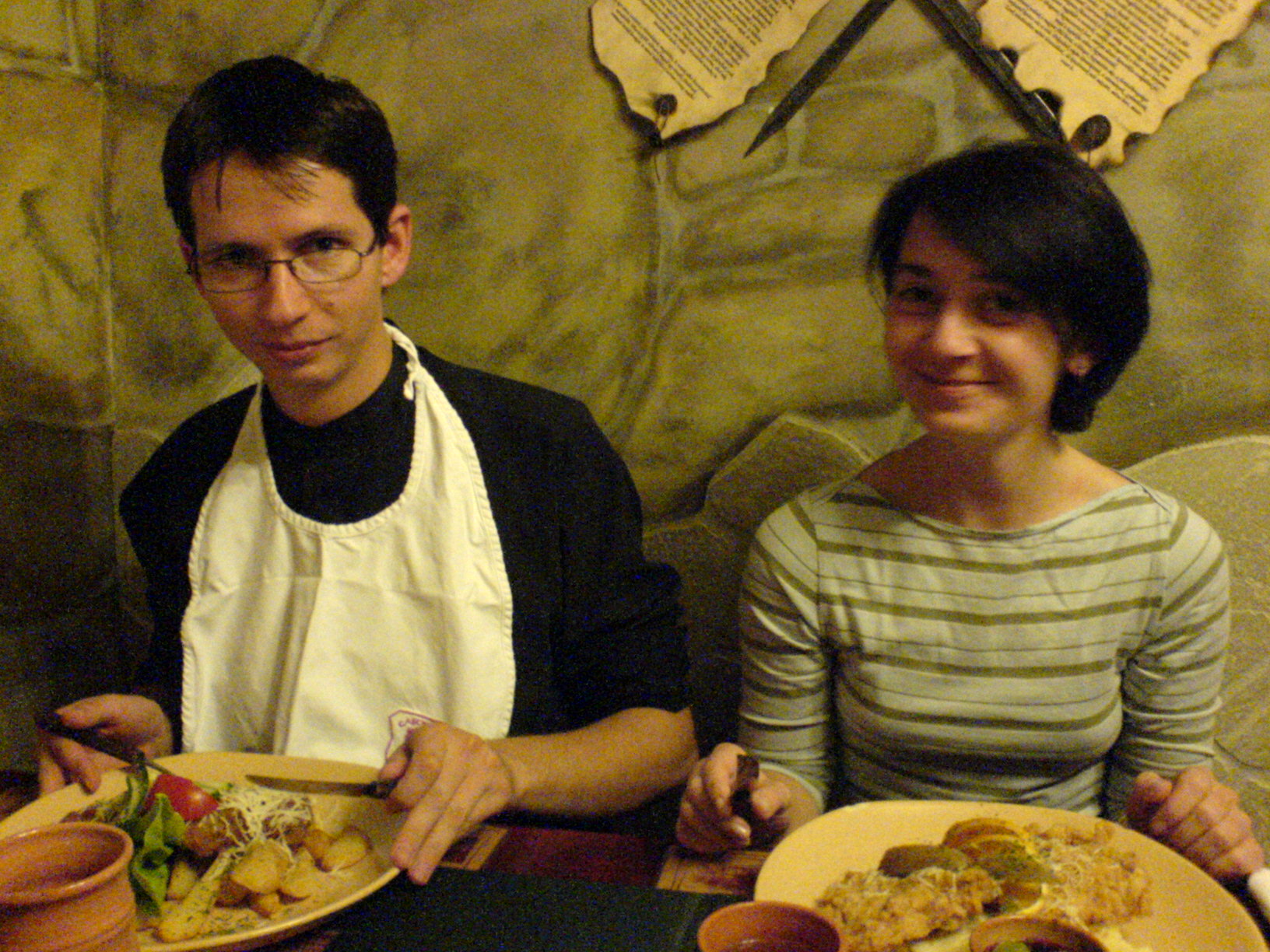Voltunk még Lovagi étteremben is, ahol a két személyes tál rendkívül íyletes és változatos, ám ténylegesen két személy számára körettel együtt megterhelő. A cipóban tálalt leveseik szenzációsak.