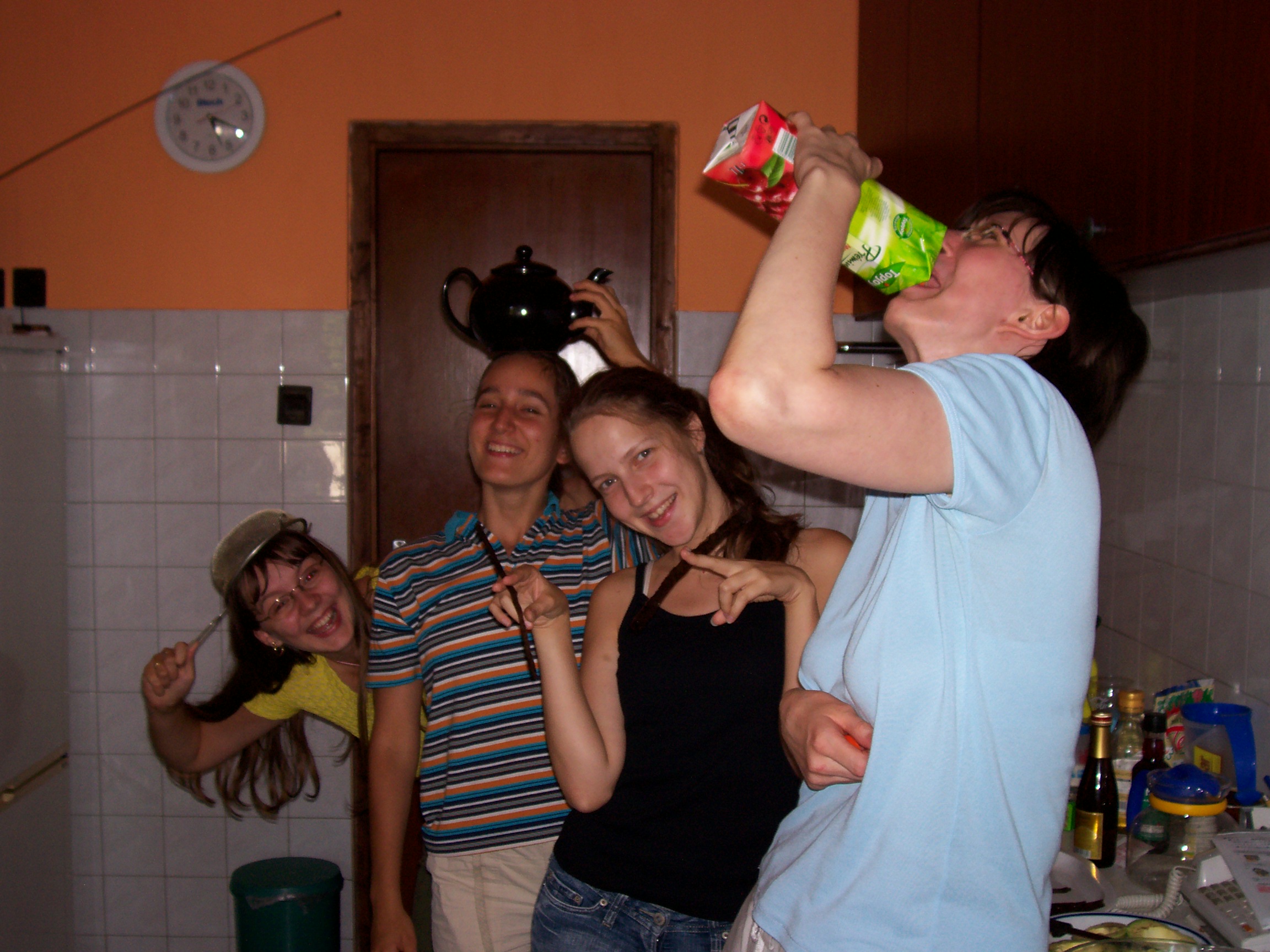 Este 9-kor indultunk vissza a szallasra. Keves alvassal kesobb elerkezett a szombat reggel, igy ismet elindultunk a TGH-ban. Ott a karaoke termet teljesen modositanunk kellett SO-mmal. A kellekek rendkivul rosszul szoltak, ahogy ezt majd kesobb irom is. Egyelore csak annyit, hogy delre megkaptuk az ebedunkent (Zolinak hala finom kinai ebedet, Shoan Dong vagy hasonlo nevu rendkivul finom volt, akarcsak a kukoricas marhaleves is *.* Mondjuk kisse kellemetlenul ert, hogy nagyjabol fel orankent volt idom egy falatra, igy deltol kezdve csak este 6-ra sikerult elfogyasztanom az ebedemet.